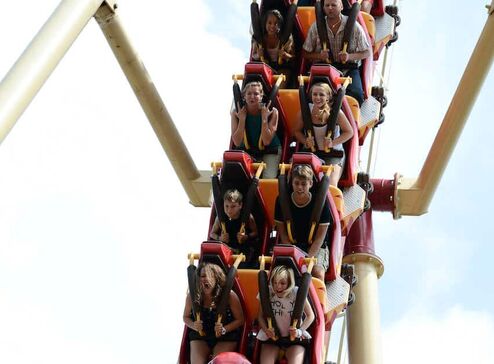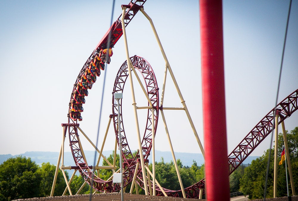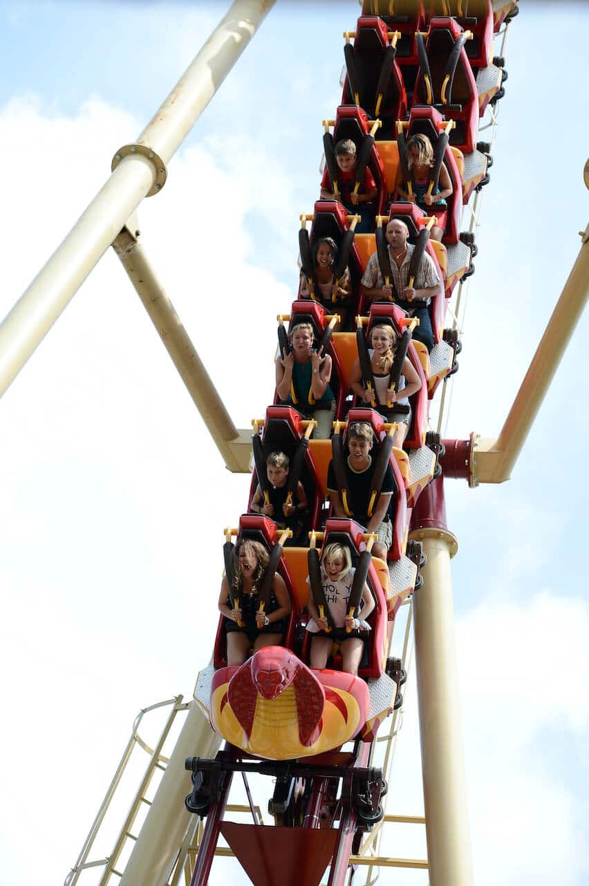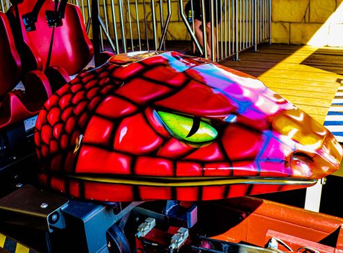 Schon von weitem erkennt man an der Silhouette, dass eine besondere Schlange auf ihre Adrenalin-Junkies wartet: Es ist „Cobra“, die Wahnsinns-Achterbahn im Freizeitpark Conny-Land.