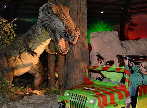Der beliebte Dino-Park, in welchem lebensechte und sich bewegende Dinosaurier gezeigt werden, wurde mit einer komplett neuen Anlage aufgerüstet: Im Jeep, in welchem die Besucher wie im Film „Jurassic Parc“ durch den Dschungel fahren, können die Fahrgäste mit einer Schiessanlage auf simulierte Feinde der Dinos schiessen, um diese zu verteidigen. Dabei kann jeder Passagier Punkte sammeln und sein Score am Ausgang des Parks einsehen, um zu beurteilen, wie gut er dabei war. Wir haben damit dem ausdrücklichen Wunsch unserer Gäste entsprochen.