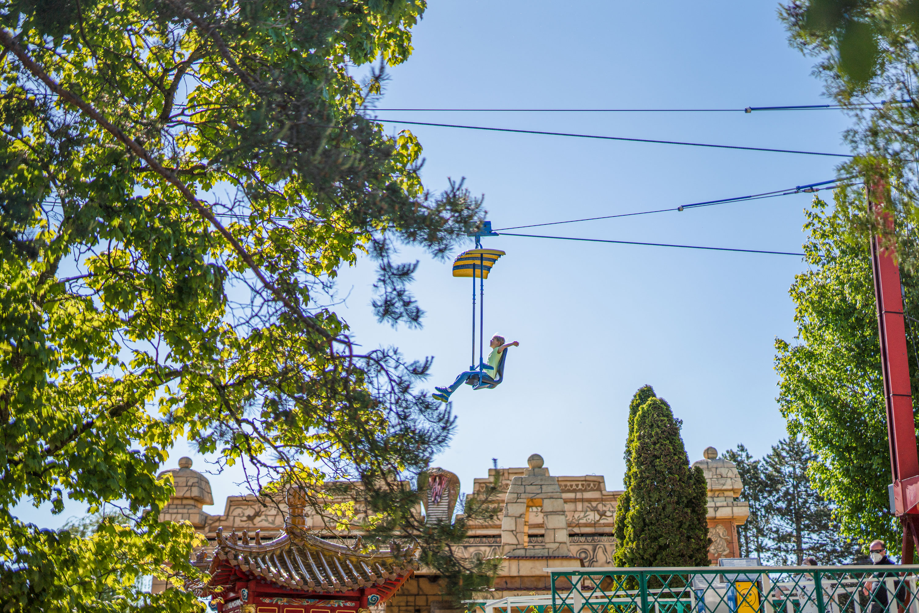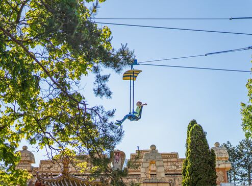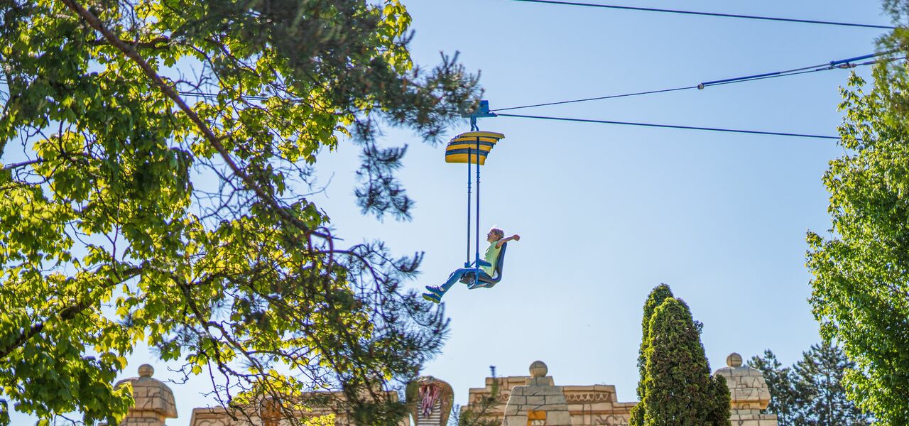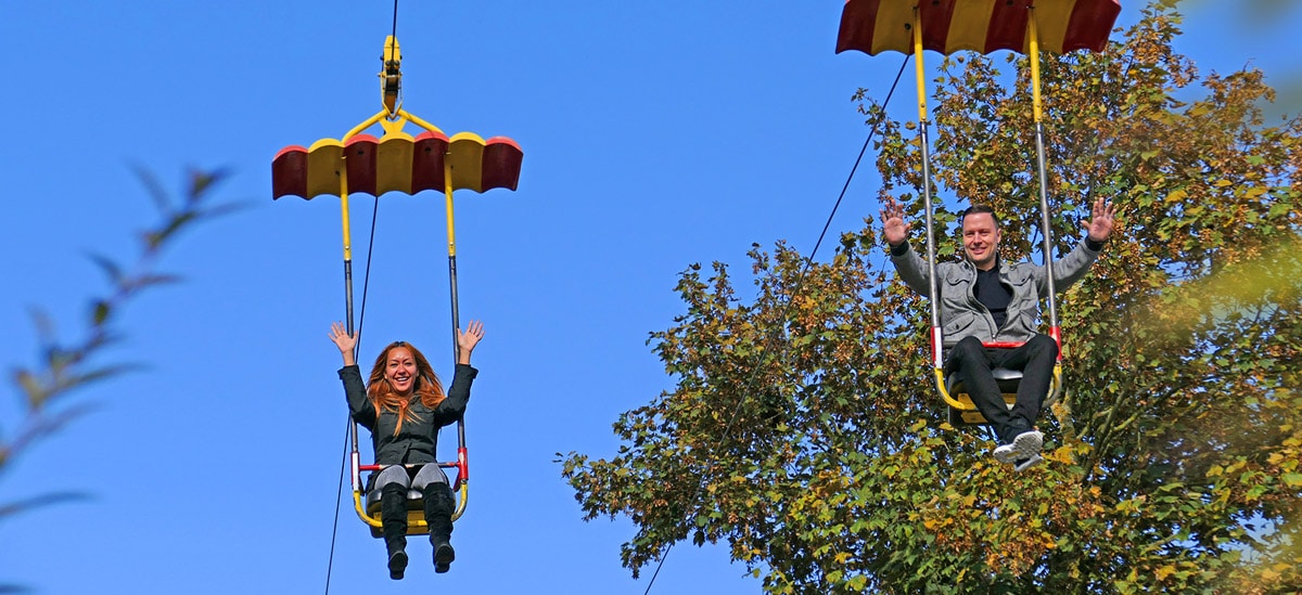 Lust auf Bergpanorama? In unserer Hochseilbahn fühlt ihr euch wie im Sessellift. Und das beste: am Horizont erheben sich die Alpen vor euch. Eine entspannte Fahrt in der Hochseilbahn ist das Muss für alle Bergliebhaber.
