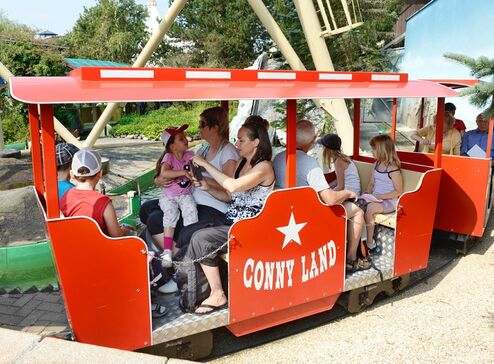 Die Attraktion für alle, die Ruhe und Entspannung suchen. Einmal mit der Bahn den Park durchqueren und die Seele baumeln lassen. Mit der Eisenbahn macht ihr Meter ohne zu gehen und seht dabei noch alles Wichtige im Conny-Land.
