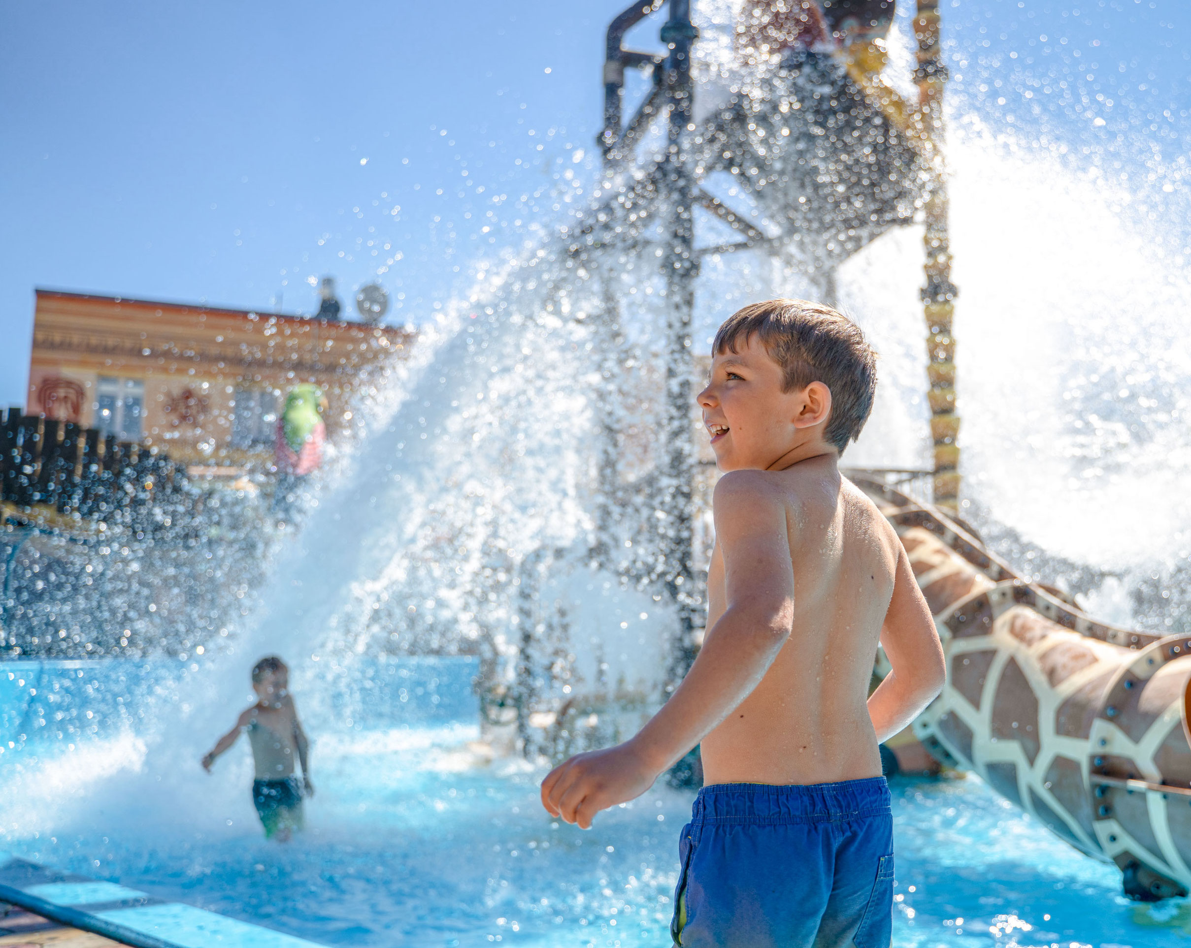 Ein spritziges Vergnügen wartet hier auf kleine Abenteurer. Abkühlung pur, wenn es mal wieder heiß ist. Baden, duschen oder einfach planschen – im Conny-Land ist alles möglich. Hauptsache es macht nass – und Spaß.