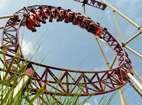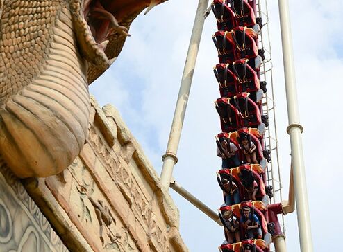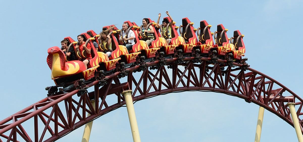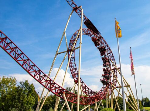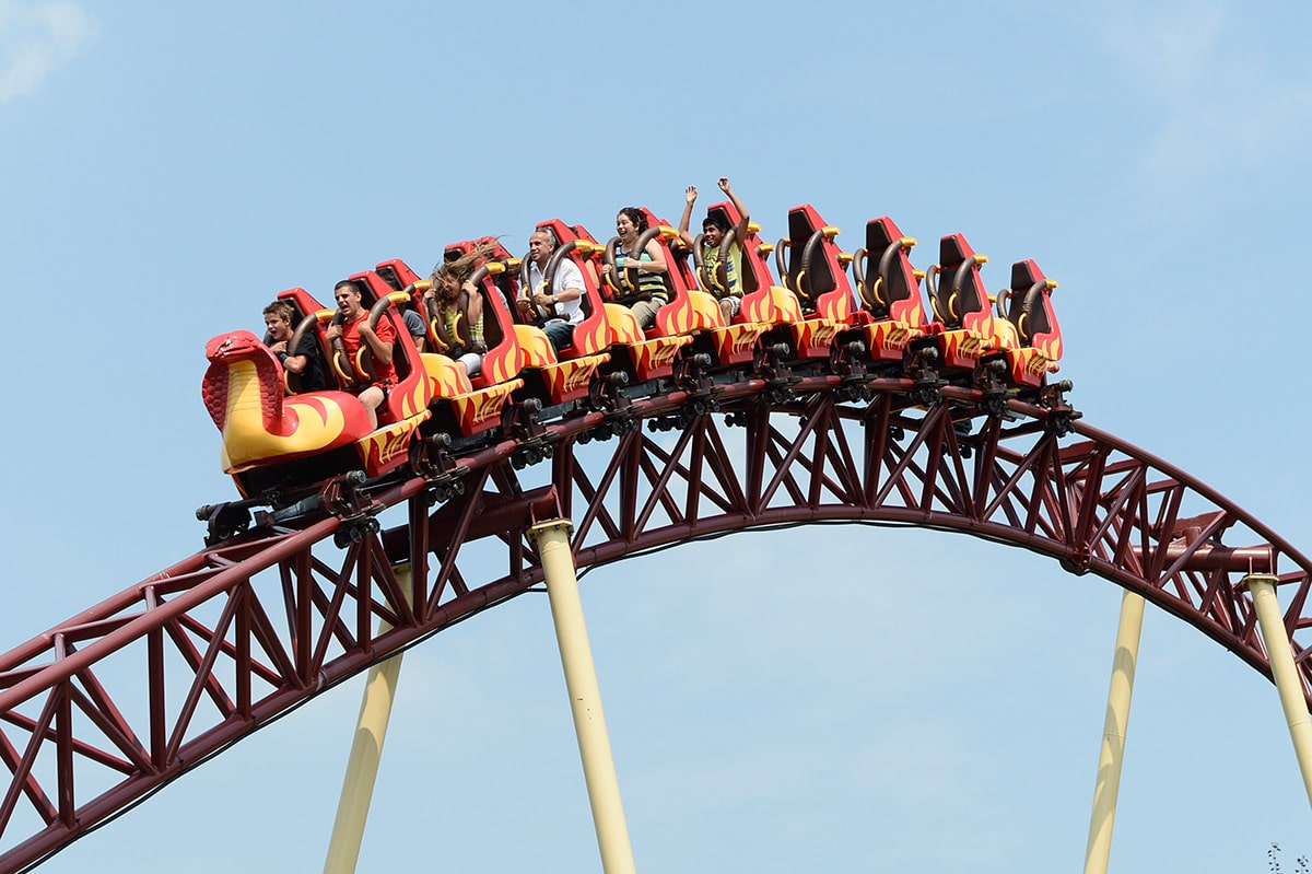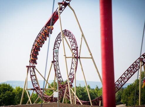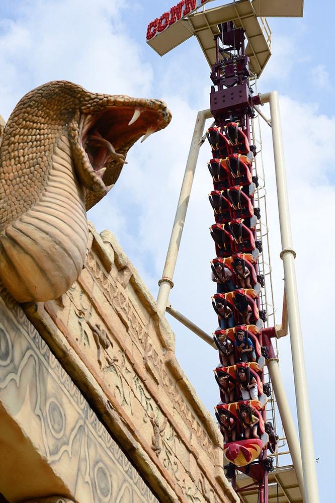 Schon von weitem erkennt man an der Silhouette, dass eine besondere Schlange auf ihre Adrenalin-Junkies wartet: Es ist „Cobra“, die Wahnsinns-Achterbahn im Freizeitpark Conny-Land.