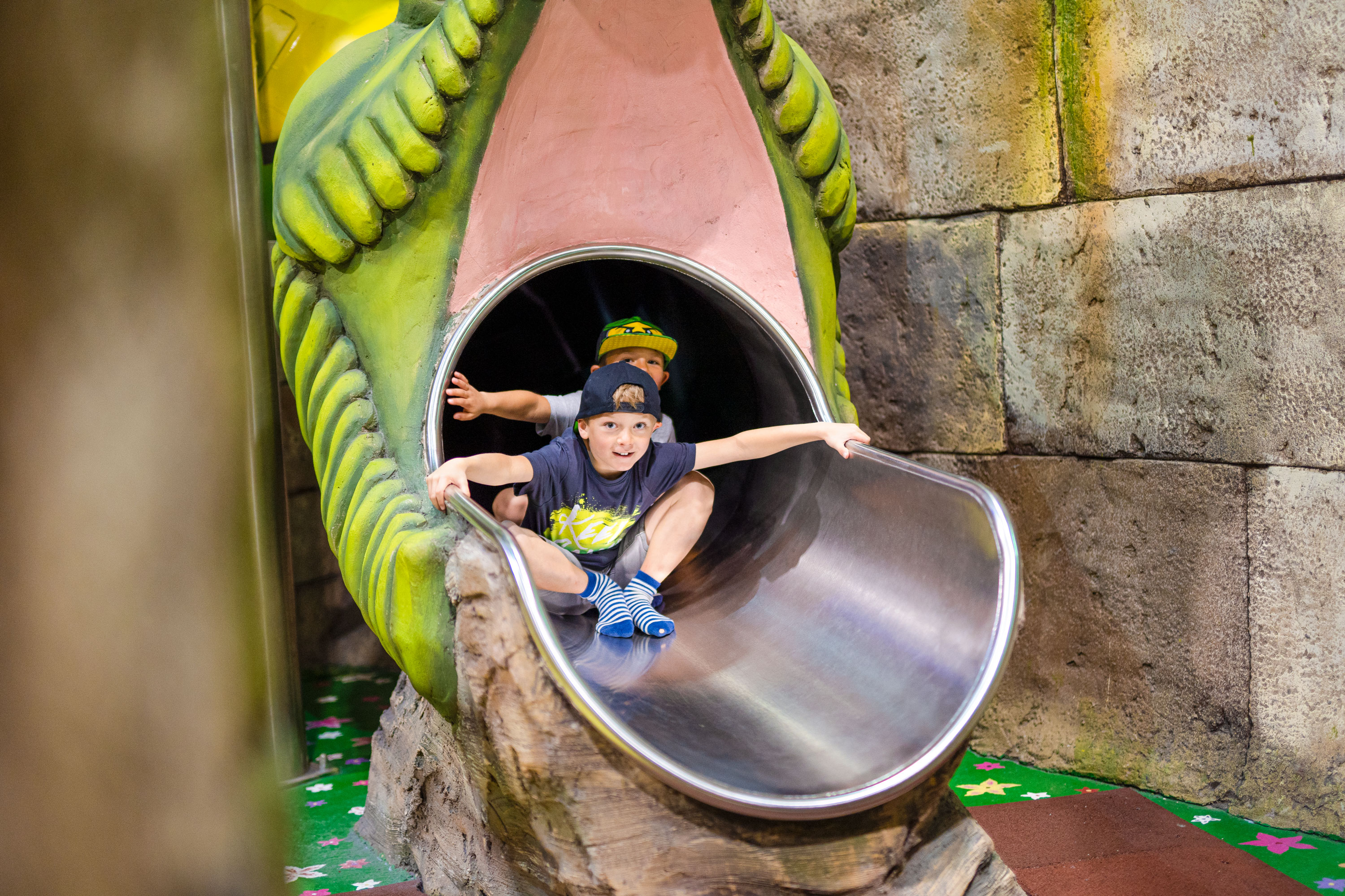 Ein Herz auch für die kleinsten Besucher des Conny-Lands: Im “Kids-Corner” finden Jungen und Mädchen im Vorschulalter Spaß und Abenteuer. Altersgemäße Abenteuer natürlich! Dieser Indoor-Spielplatz hat riesige Soft-Toys – samtweiche Krokodile, riesengroß, zum knuddeln und klettern, Walzen auf die man sich legen kann ohne dass irgendwo etwas drückt oder zwickt. Ein richtig samtweiches Paradies also. Und in den fantasievollen Buschhäusern, zwischen Bällen und Schaumstoff beginnt das Abenteuer mit Geschicklichkeitsspielen für die Kids. Herzlich Willkommen in unserer “Kids-Corner”-Abenteuerwelt.