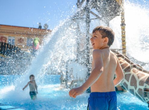 Ein spritziges Vergnügen wartet hier auf kleine Abenteurer. Abkühlung pur, wenn es mal wieder heiß ist. Baden, duschen oder einfach planschen – im Conny-Land ist alles möglich. Hauptsache es macht nass – und Spaß.